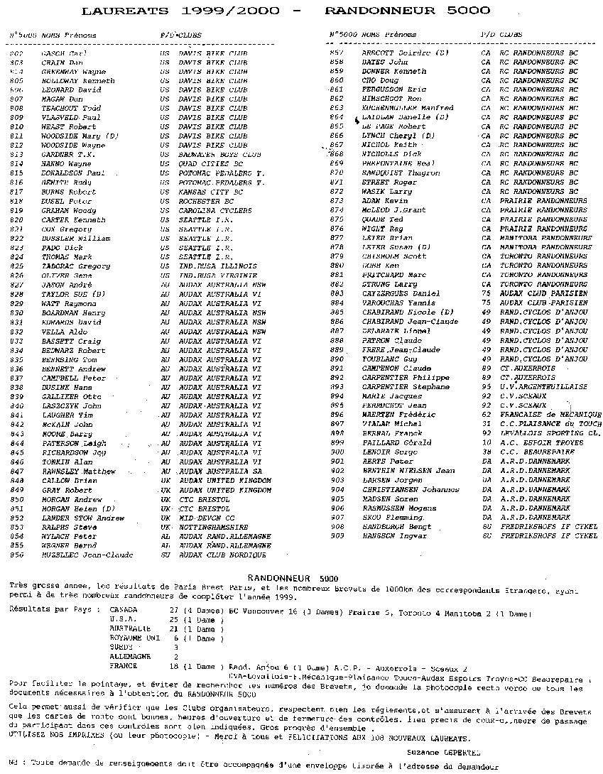 2000 Audax Club Parisian, Randonneurs Mondiaux & Randonneurs USA Medals