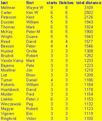 Riders with more than 1000 kilometers as of 2006